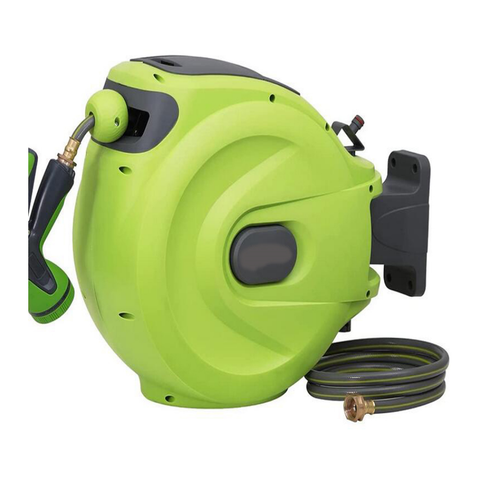 Einziehbare Gartens ch lauch trommel, Wand montage mit Spritzpistole, beliebig langes Schloss und langsames Rücklaufs ystem 180 Schwenk halterung